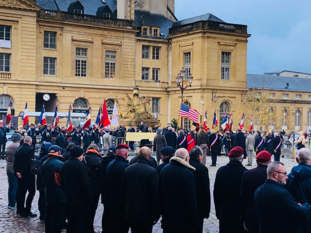 Les commémorations se sont poursuivies sur la Place d’Armes avec les discours respectifs de M. François Grosdidier, maire de Metz, M. Patrick Weiten, président du Conseil départemental de la Moselle et M. Jean-Louis Thiériot, ministre délégué aux Armées et aux anciens combattants, en présence du colonel Gabriel Chinchilla de l’armée américaine.