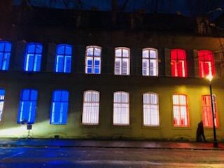Le ministre s’est ensuite rendu Place de France pour inaugurer la nouvelle Maison régionale de la Mémoire du Souvenir français, drapée de lumières aux couleurs nationales. Les discours étaient relayés par sono jusque dans l’église Saint-Simon–Saint-Jude qui abritait la nombreuse assistance dans l’attente d’une visite par petits groupes de l’espace de 300 m2, qui abrite pour quelques semaines une belle exposition « Entre ombre et lumière – Les compagnons de la Libération du Grand Est ».