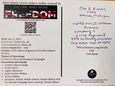 Seul vétéran à avoir fait le déplacement pour représenter ses rares camarades survivants, Ceo a été enchanté de revoir le président de l’association qui lui a remis sur une clé USB le contenu de la conférence qu’il a présentée lors du Salon du livre d’histoire de Woippy, dans laquelle il incarnait son personnage et racontait son épopée lorraine.