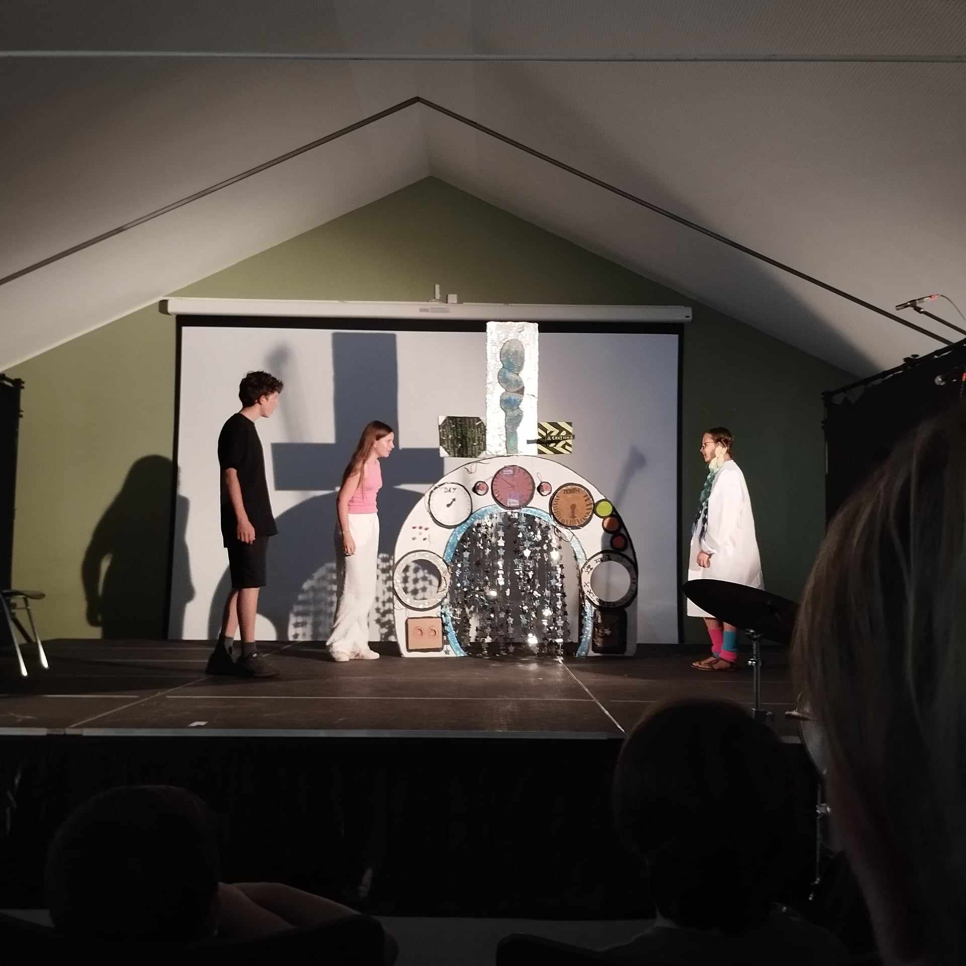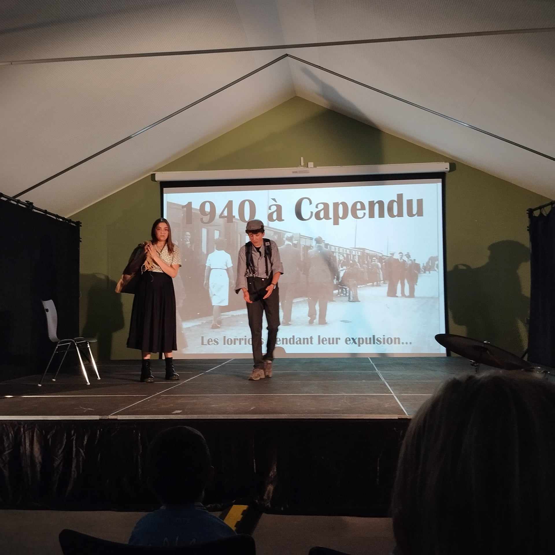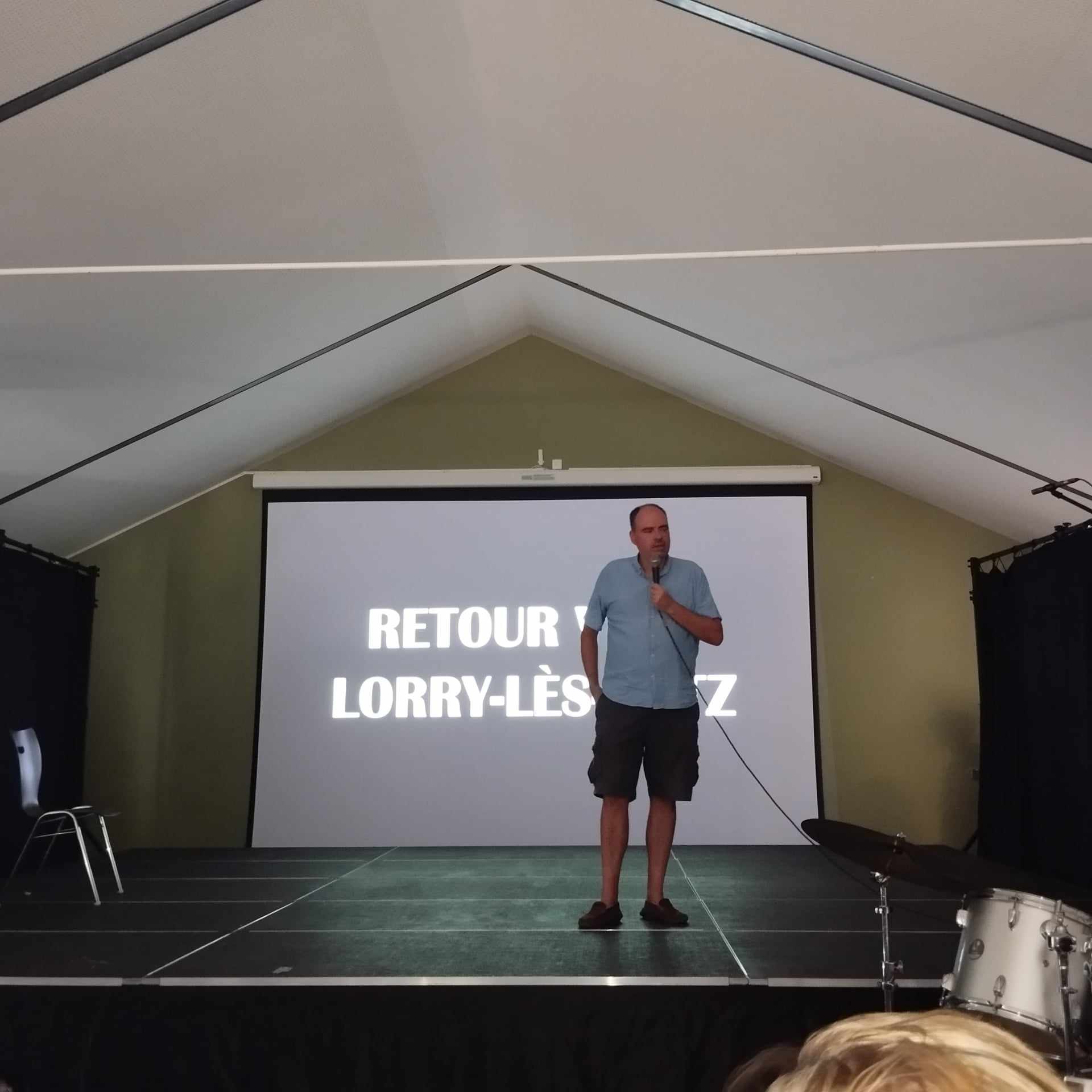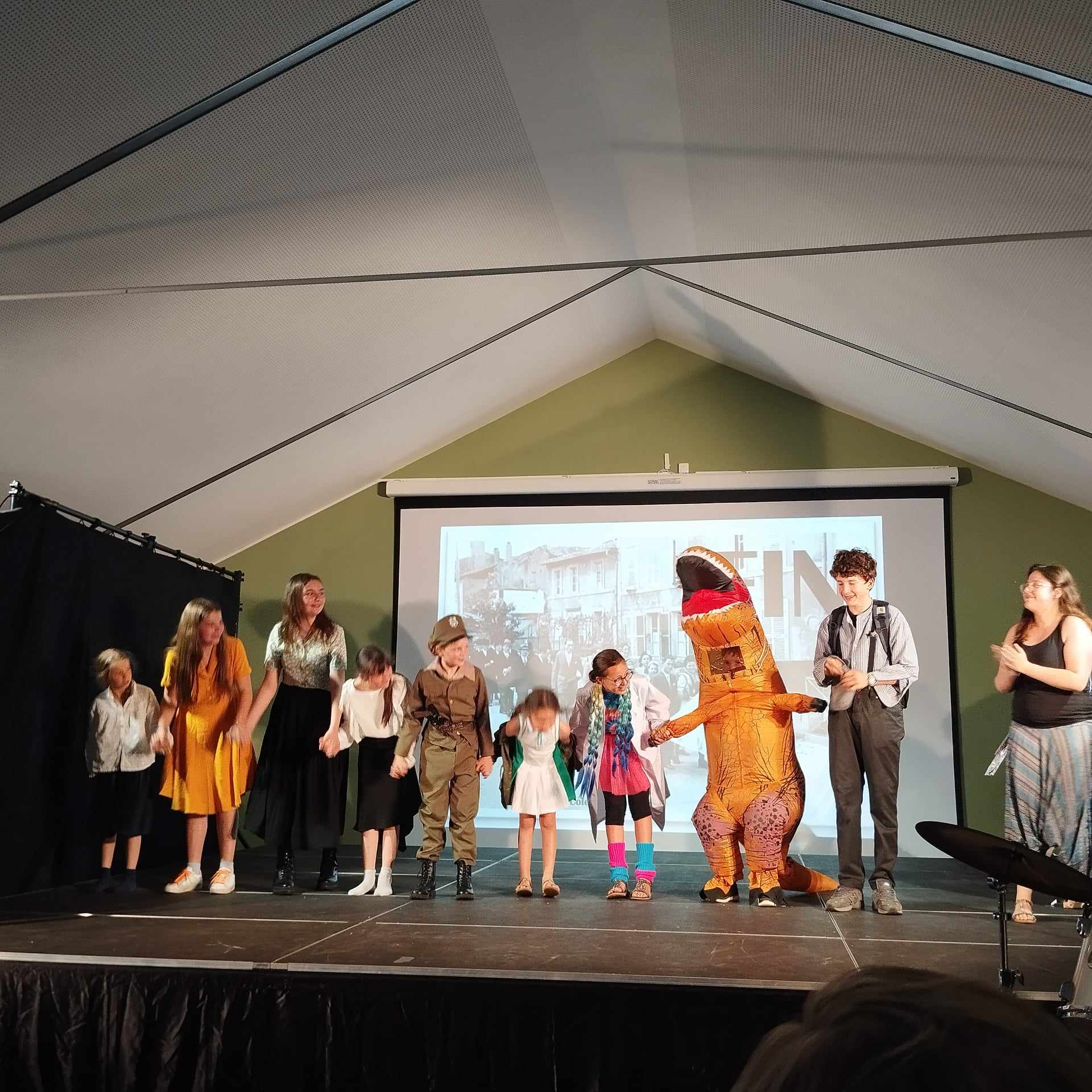Dix-neuf de nos membres de Lorry-lès-Metz « au fil du temps » étaient présents à l’Espace Philippe-de-Vigneulles pour assister à une pièce de théâtre présentée par l’Aldam dans le cadre du Festival des Arts. Nous avons pu apprécier la qualité du travail d’écriture du scénario inspiré des rencontres avec notre association, ainsi que les textes et les décors réalisés en peu de temps par les élèves de la classe de théâtre dirigée par Esther Grillat. Autour du thème « Retour vers le futur », la mise en scène des aventures de 2 jeunes Lorriots utilisant une machine à remonter le temps, s’est librement inspirée du vécu de quelques habitants durant la période de l’annexion allemande. Le jeu des 9 acteurs âgés de 6 à 14 ans a été complété par les témoignages vidéo et audio de Maurice Vigneron, Gisèle Guthmuller, et Anne-Marie Cholley. Patricia Lallier a mis la metteuse en scène en relation avec les Anciens du village pour les récits, Claudine Kester-Elghozi et Gérard Kester ont eu plaisir à accompagner le projet lors de la relecture du scénario et de la mise à disposition de photos anciennes. Charles Scherer, le président de l’Aldam, et Esther Grillat ont salué le partenariat avec notre association. Un grand merci pour ce moment agréable et nos félicitations à toutes et tous !