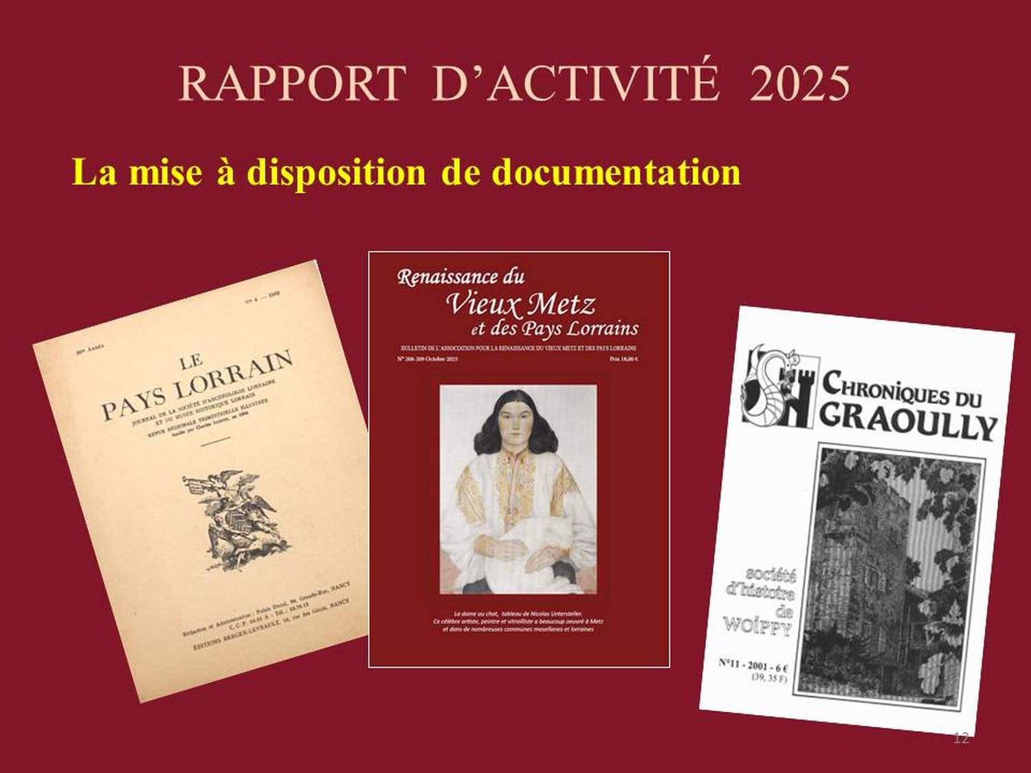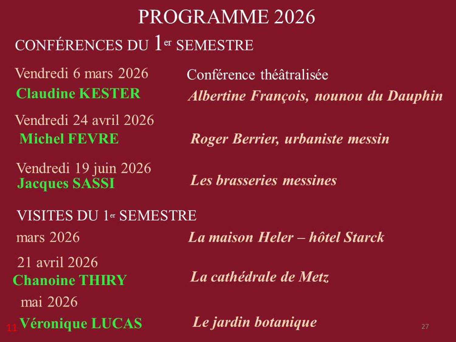 Après la présentation du programme de l’année, celle des 25 ans de l’association en 2027 et de la commémoration des 500 ans de la mort de Philippe de Vigneulles en 2028, le président a chaleureusement remercié les soutiens de l’association et annoncé le titre de la seconde partie de la soirée : La nourrice du Dauphin.